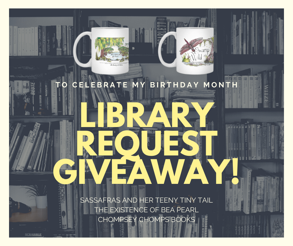 To win your choice of a Swamp Wild or River Wild mug, all you have to do is request one of my books at your library! You get an additional entry for each book. Just DM me on any of my social media the library you made the request at, and you’re entered to win with my sincere thanks! If you’d like a free e-copy of Bea Pearl’s deleted prequel-turned-short-story, “Canis Beach,” in addition to your name in the mug drawing, just let me know.